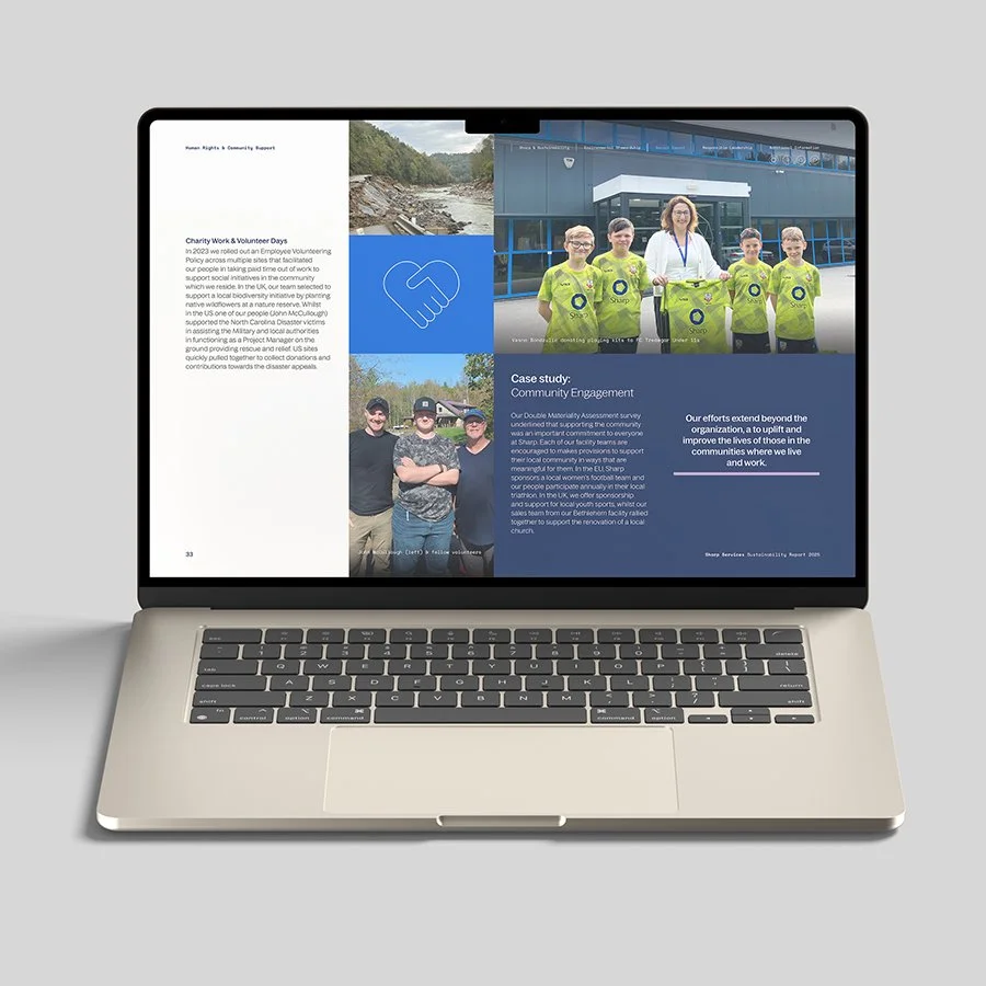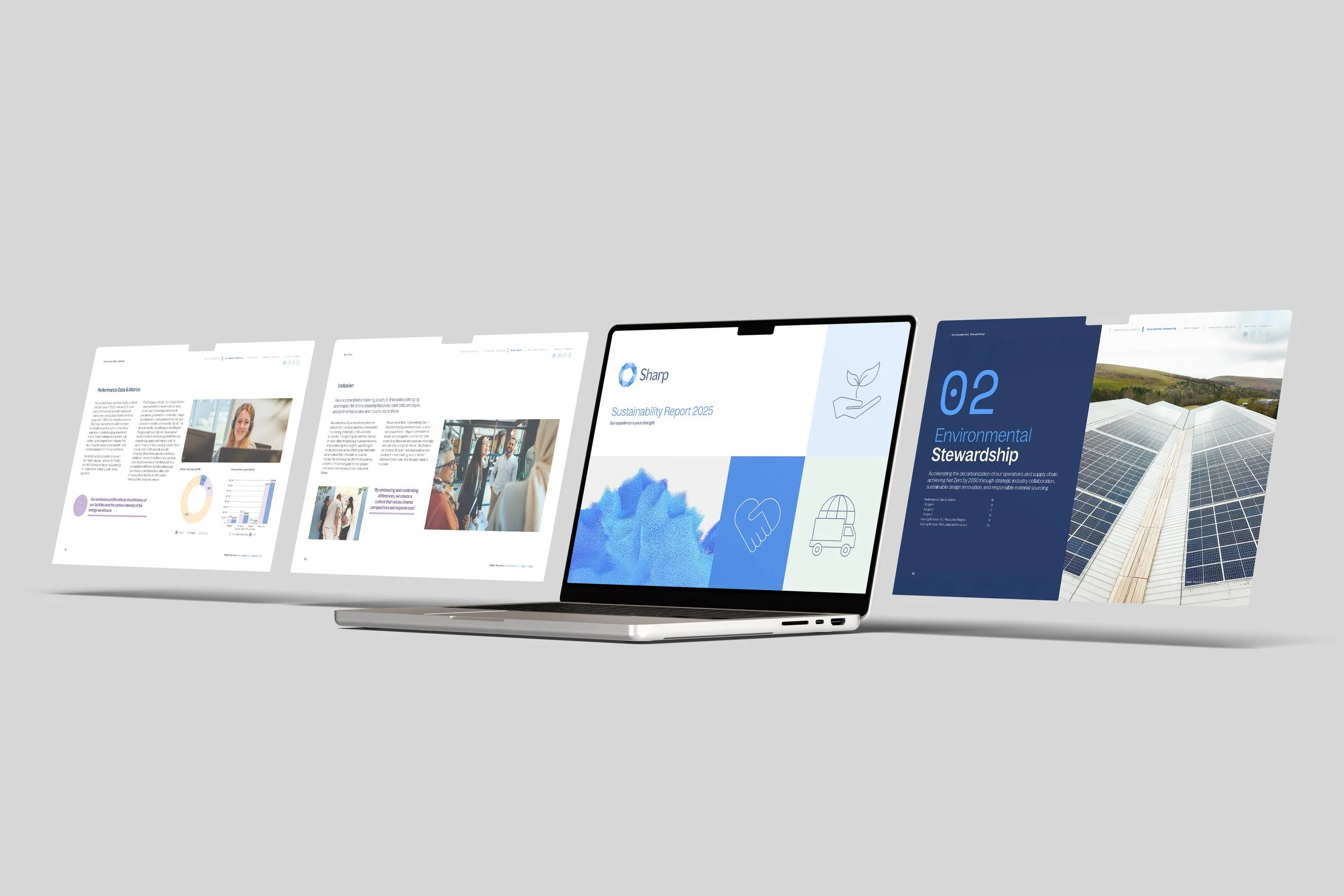 Sustainability reporting is often dense and technical. Our challenge was to shift that expectation—transforming Sharp’s ESG commitments into something visually compelling and intuitively navigable.